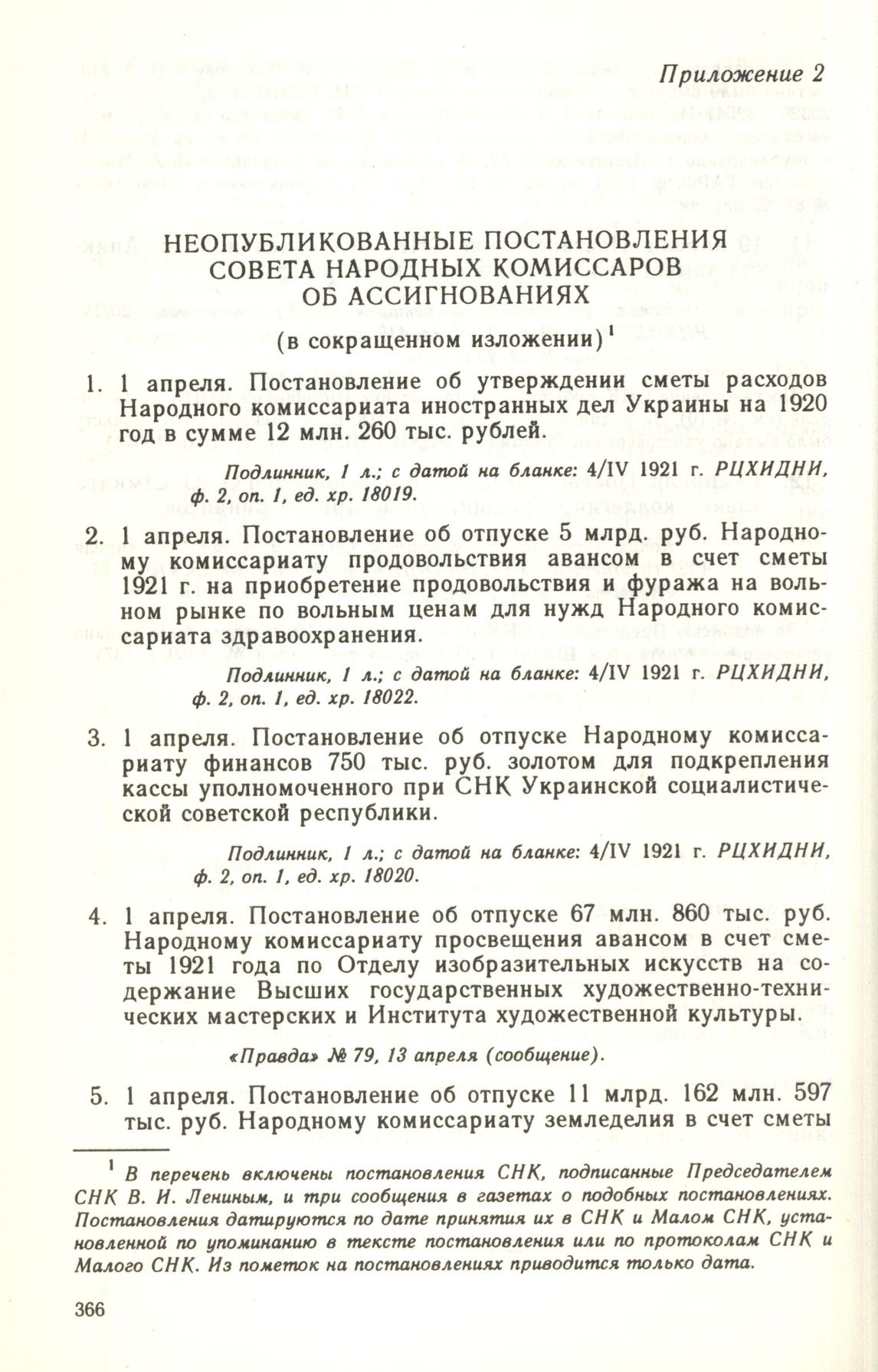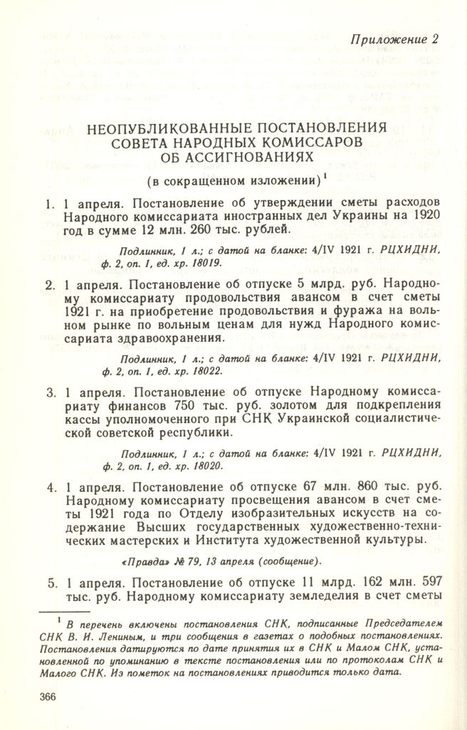 1 апреля. Постановление об утверждении сметы расходов Народного комиссариата иностранных дел Украины на 1920 год в сумме 12 млн. 260 тыс. рублей // Подлинник. 1 л.; с датой на бланке: 4/IV 1921 г. РЦХИДНИ, ф. 2, оп. 1, ед. хр. 18019.