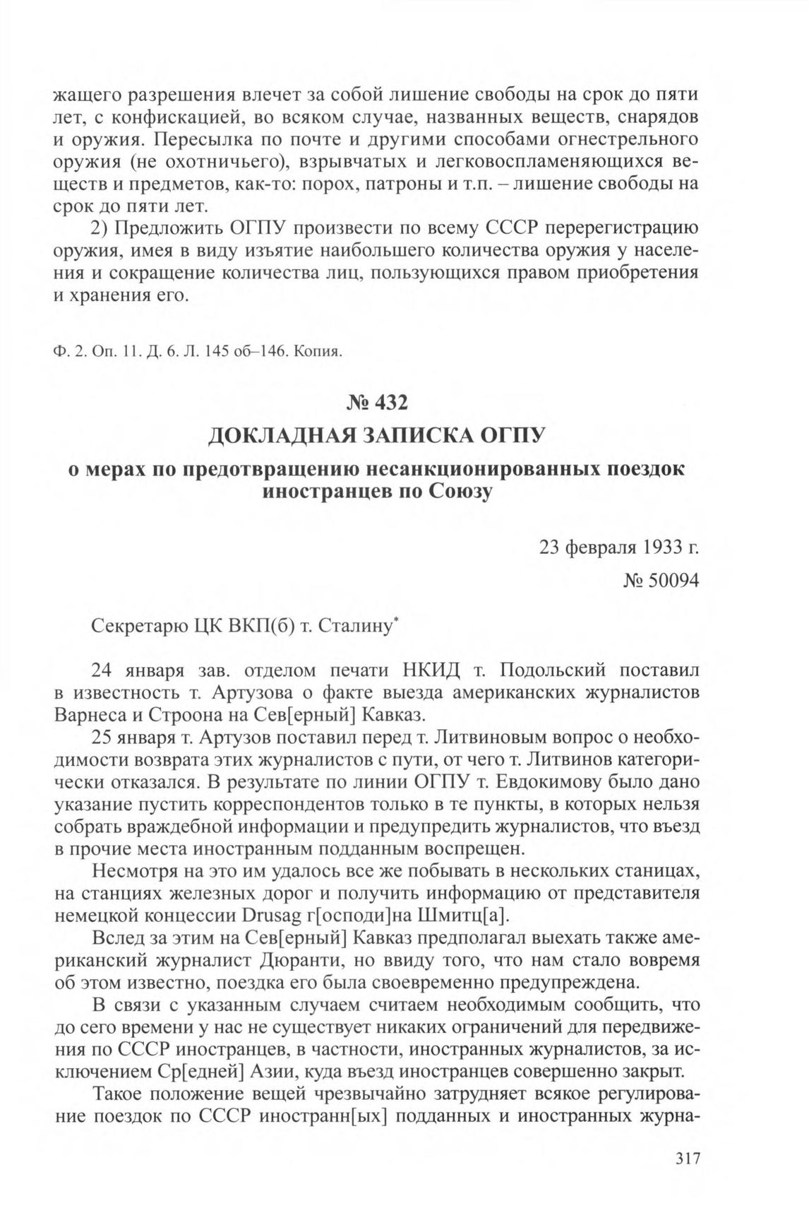 Докладная записка ОГПУ о мерах по предотвращению несанкционированных поездок иностранцев по Союзу. 23 февраля 1933 г. // ЦА ФСБ РФ. Ф. 2. Oп. 11. Д. 6. Л. 206-208. Копия.