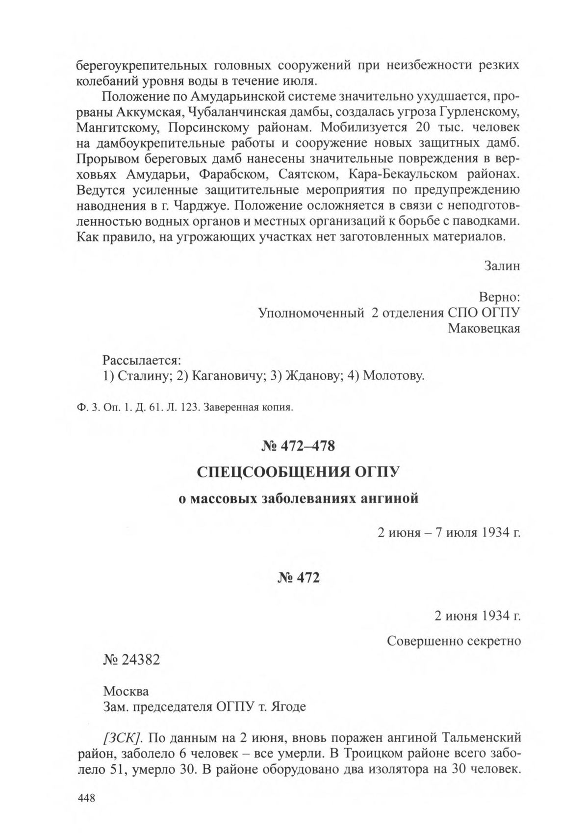 Спецсообщения ОГПУ о массовых заболеваниях ангиной. 2 июня - 7 июля 1934 г. 2 июня 1934 г.
