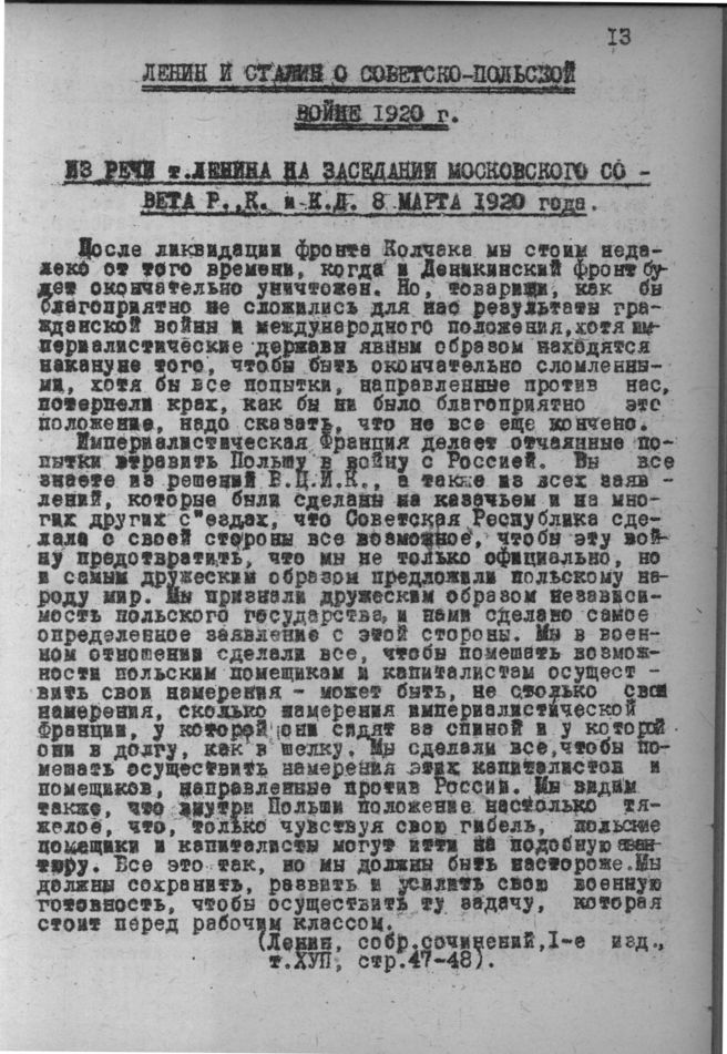 Из речи т. Ленина на заседании Московского Совета Р., К. и К. Д. 8 марта 1920 г. // Ленин, собр. сочинений, 1-е изд., т. XVII, стр. 47-48.