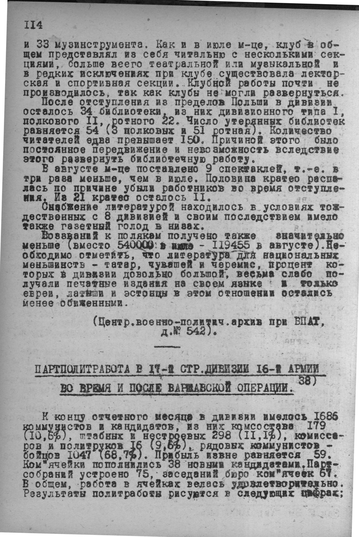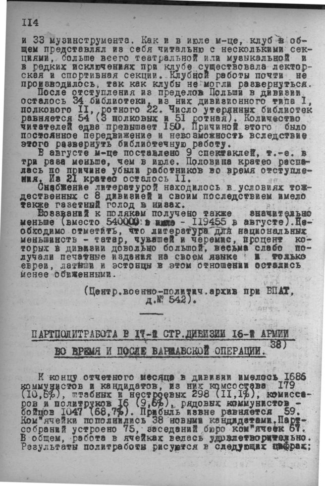 Партполитработа в 17-й стр. дивизии 16-й армии во время и после Варшавской операции. 28 окт. 1920 г.