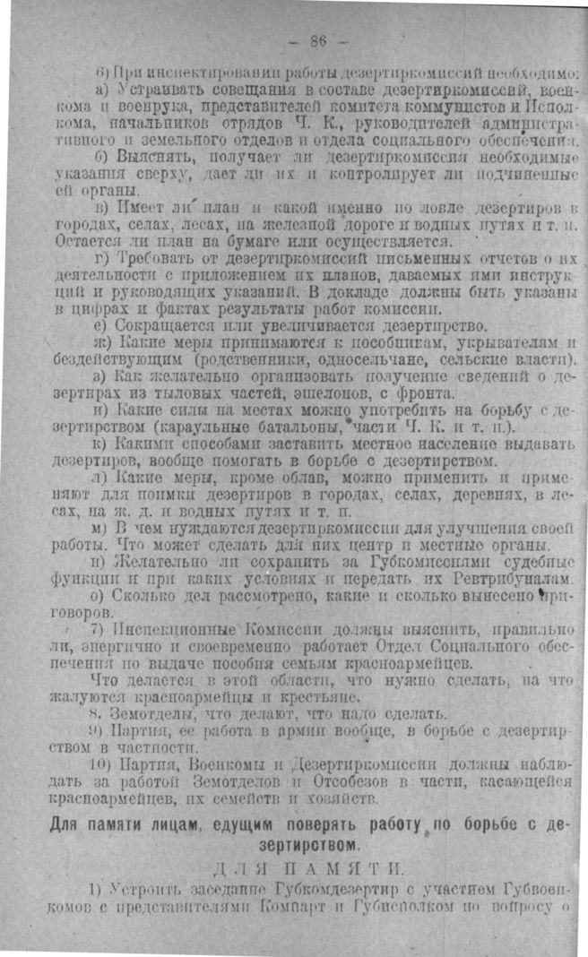 Для памяти лицам, едущим поверять работу по борьбе с дезертирством
