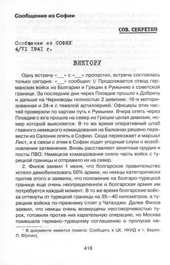 Сообщение из Софии. Виктору. 4/VI 1941 г.
