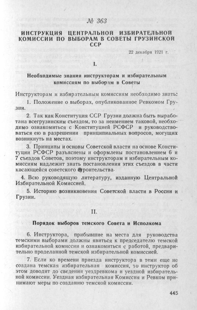 Инструкция Центральной Избирательной Комиссии по выборам в Советы Грузинской ССР. 22 декабря 1921 г. // Газ. «Правда Грузии» № 249, 28 декабря 1921 г.
