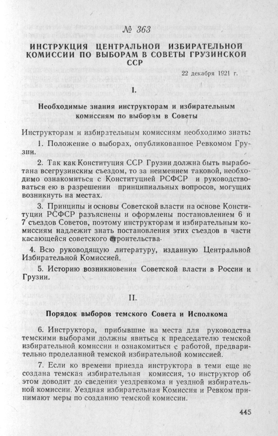 Инструкция Центральной Избирательной Комиссии по выборам в Советы Грузинской ССР. 22 декабря 1921 г.