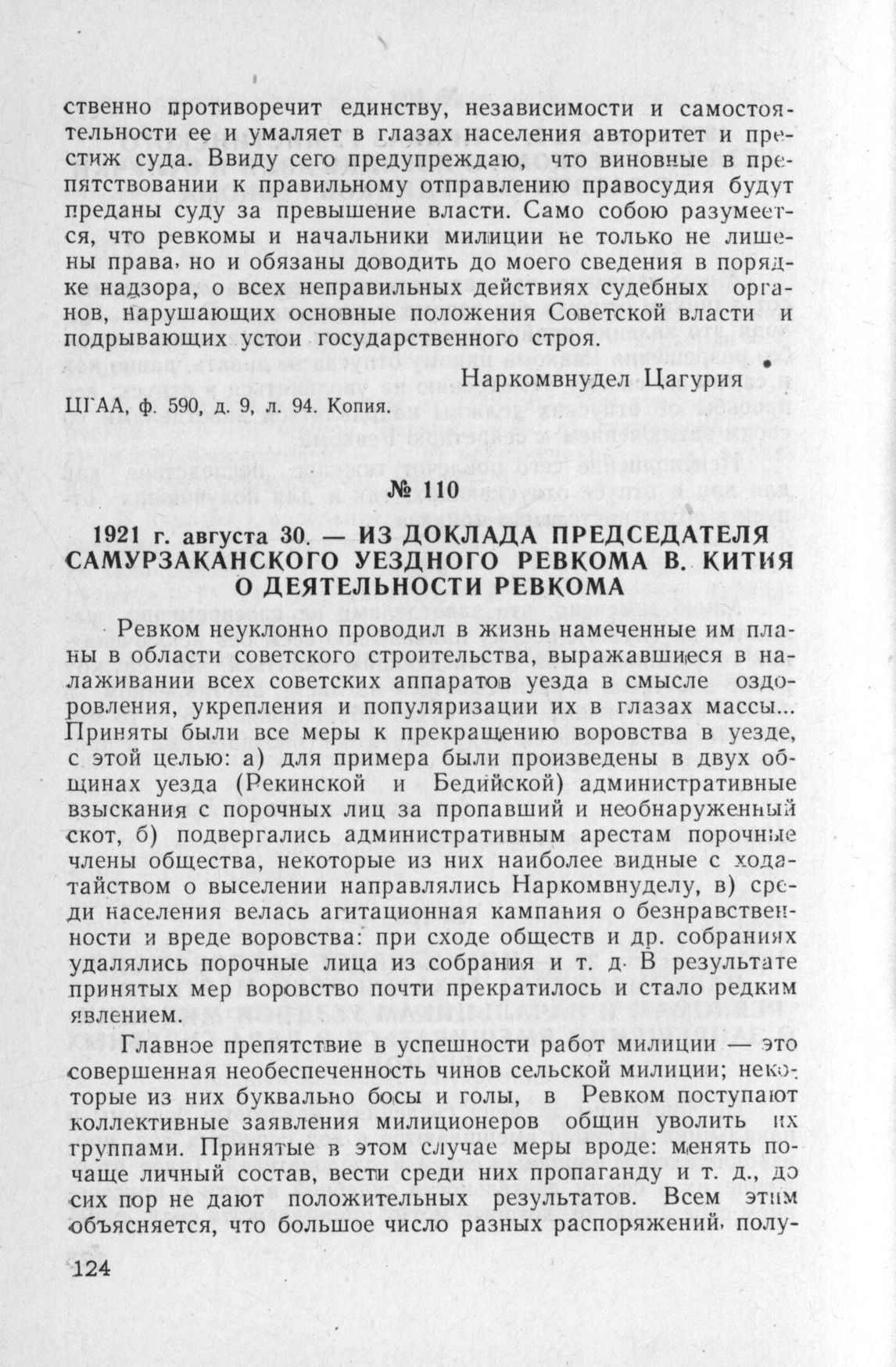 Из доклада председателя Самурзаканского уездного Ревкома В. Кития о деятельности Ревкома. 30 августа 1921 г. // ЦГАА, ф. 38, д. 30, л. 257. Подлинник.
