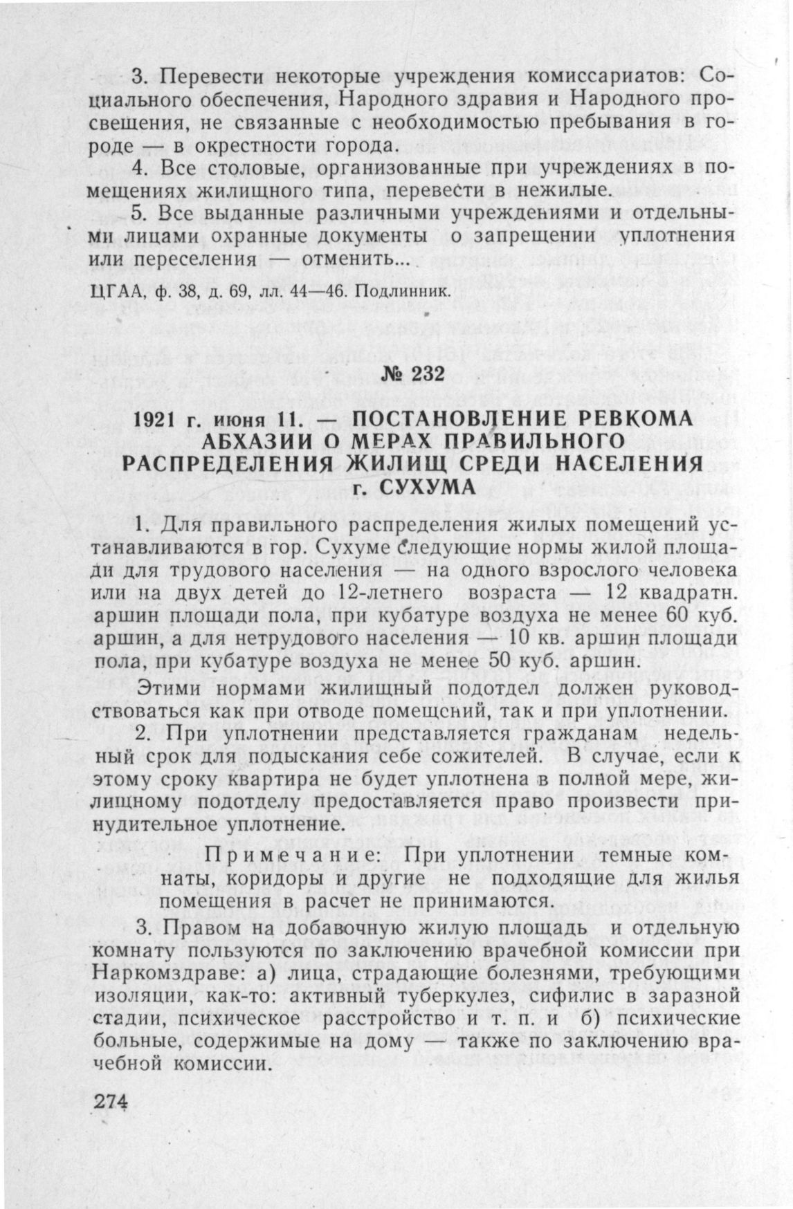 Постановление Ревкома Абхазии о мерах правильного распределения жи...