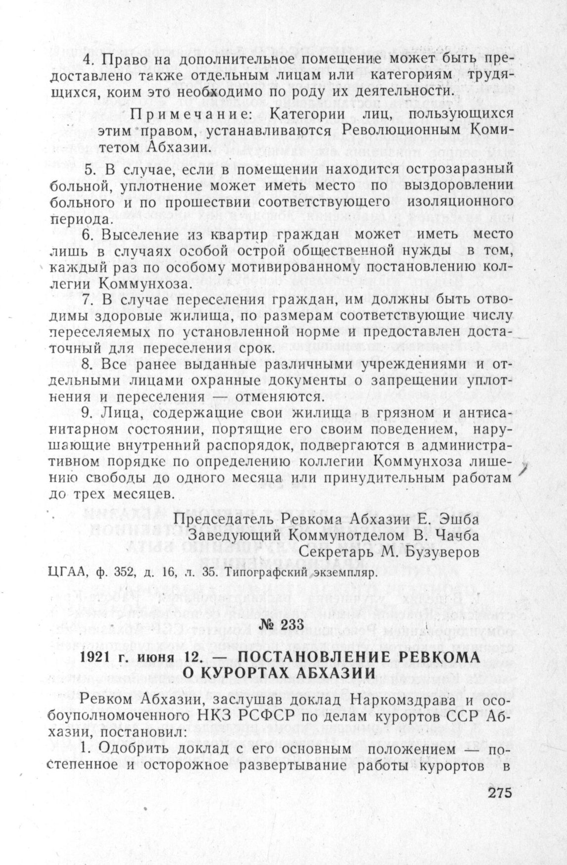 Постановление Ревкома о курортах Абхазии. 12 июня 1921 г.