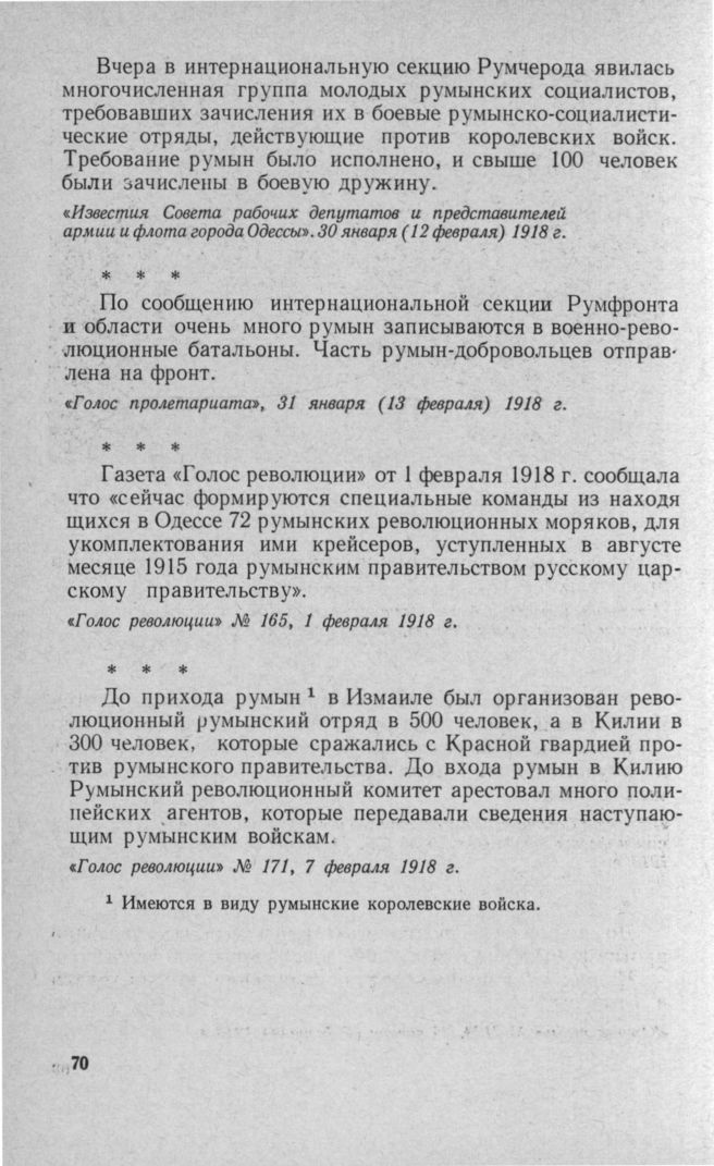 Сообщения о создании румынских революционых отрядов. 12 января — 7 февраля 1918 г. Сообщение 6 // «Голос революции» № 165, 1 февраля 1918 г.