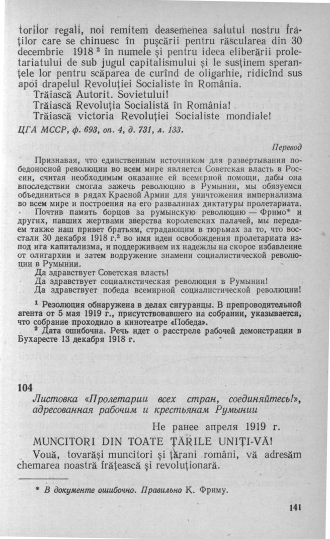 Под знаменем пролетарского интернационализма. Деятельность румынских интернационалистов на территории Страны Советов. 1917-1920 гг.: Сб. док. и материалов. — М.: Наука, 1980.