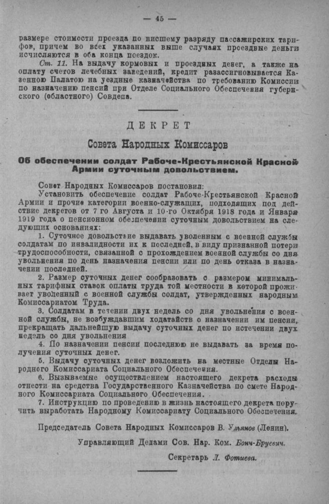 Декрет Совета Народных Комиссаров Об обеспечении солдат Рабоче-Крестьянской Красной Армии суточным довольствием (Декрет и Инструкция)