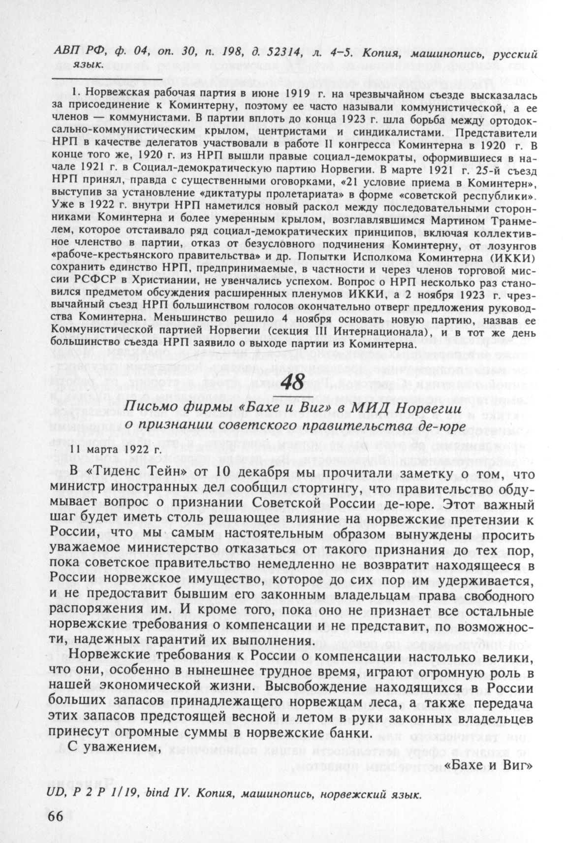 Письмо фирмы «Бахе и Виг» в МИД Норвегии о признании советского правительства де-юре. 11 марта 1922 г. // UD, Р 2 Р 1/19, bind IV. Копия, машинопись, норвежский язык.