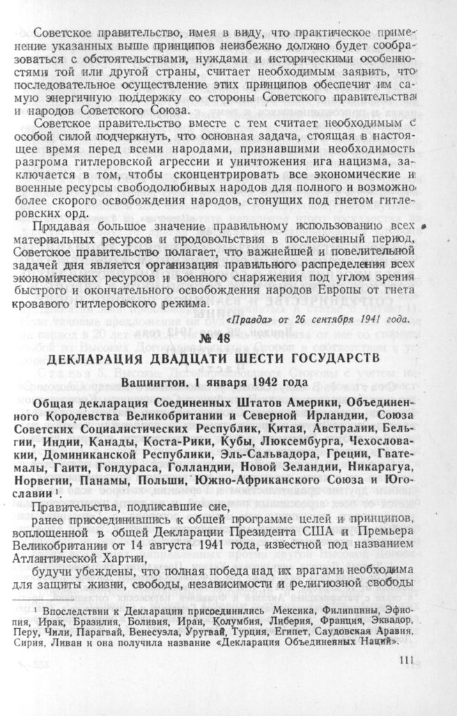 Декларация двадцати шести государств. Вашингтон. 1 января 1942 года // «Известия» от 3 января 1942 года.