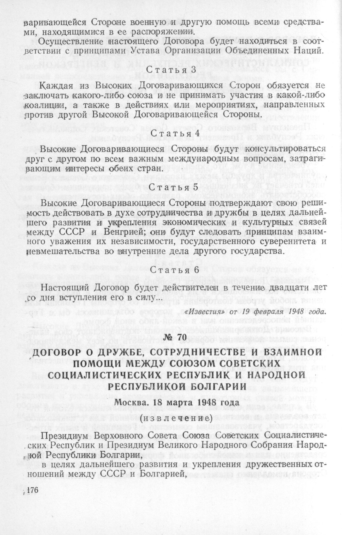 Договор о дружбе, сотрудничестве и взаимной помощи между Союзом Советских Социалистических Республик и Народной Республикой Болгарии. Москва. 18 марта 1948 года