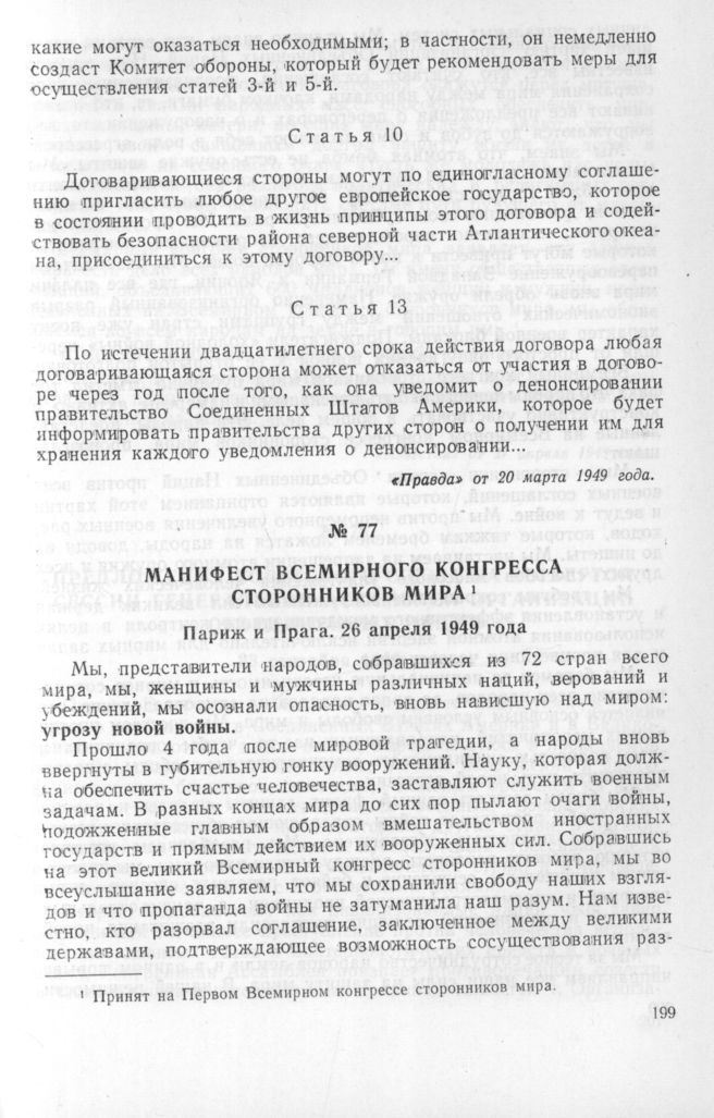 Манифест Всемирного конгресса сторонников мира. Париж и Прага. 26 апреля 1949 года // «Известия» от 27 апреля 1949 года.
