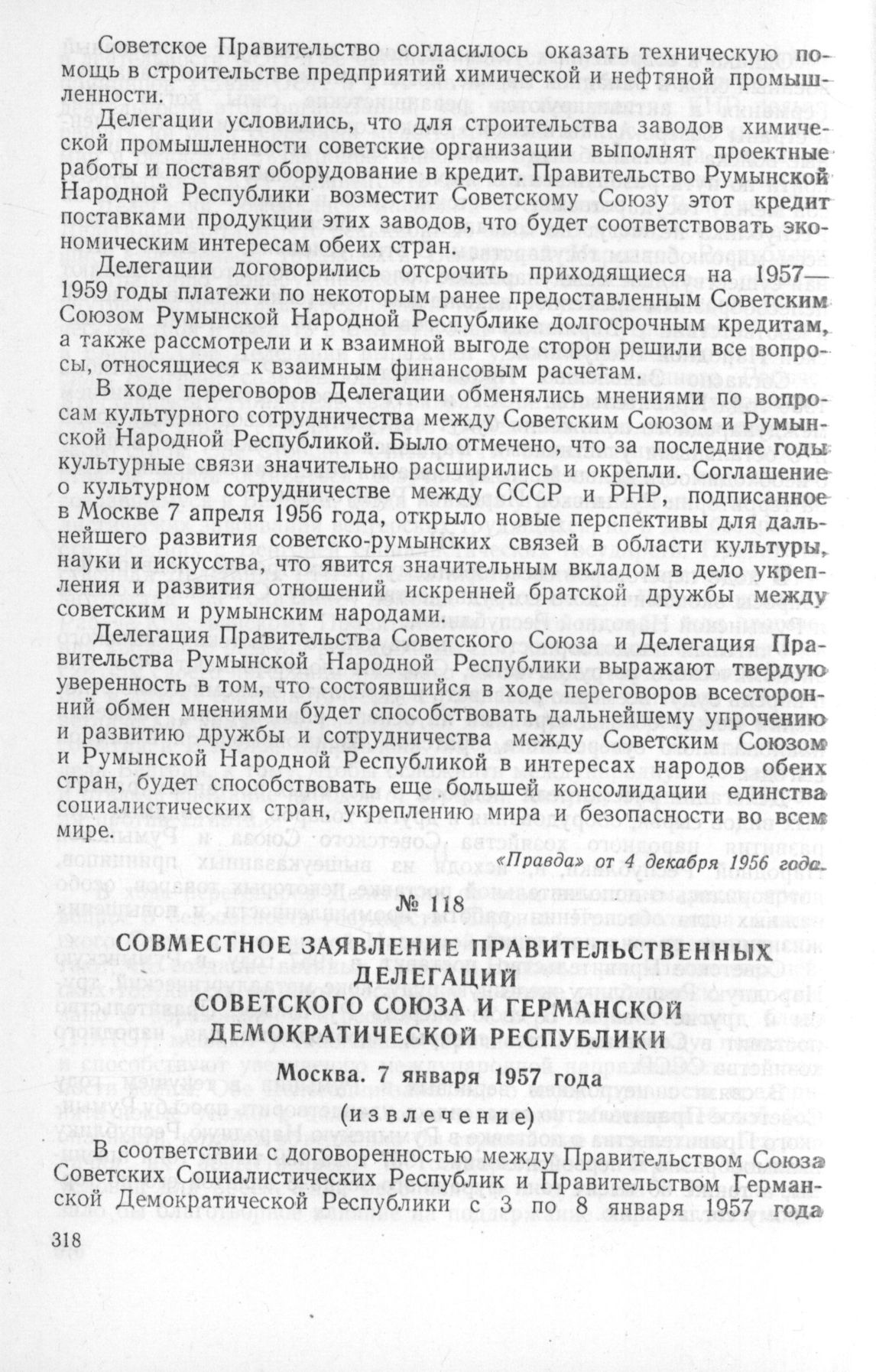 Совместное заявление Правительственных Делегаций Советского Союза и Германской Демократической Республики. Москва. 7 января 1957 года // «Правда» от 8 января 1957 года.