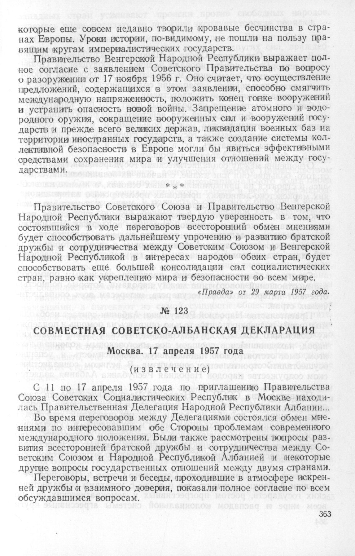 Совместная Советско-Албанская Декларация. Москва. 17 апреля 1957 года // «Правда» от 18 апреля 1957 года.