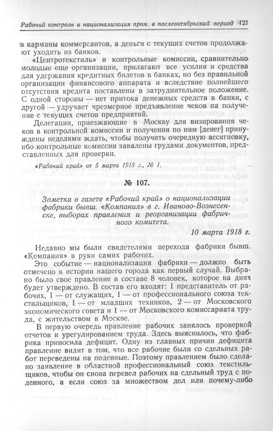Материалы по истории СССР. Вып. III. Рабочий контроль и национализация крупной промышленности в Иваново-Вознесенской губернии. — М.: Изд-во АН СССР, 1956.