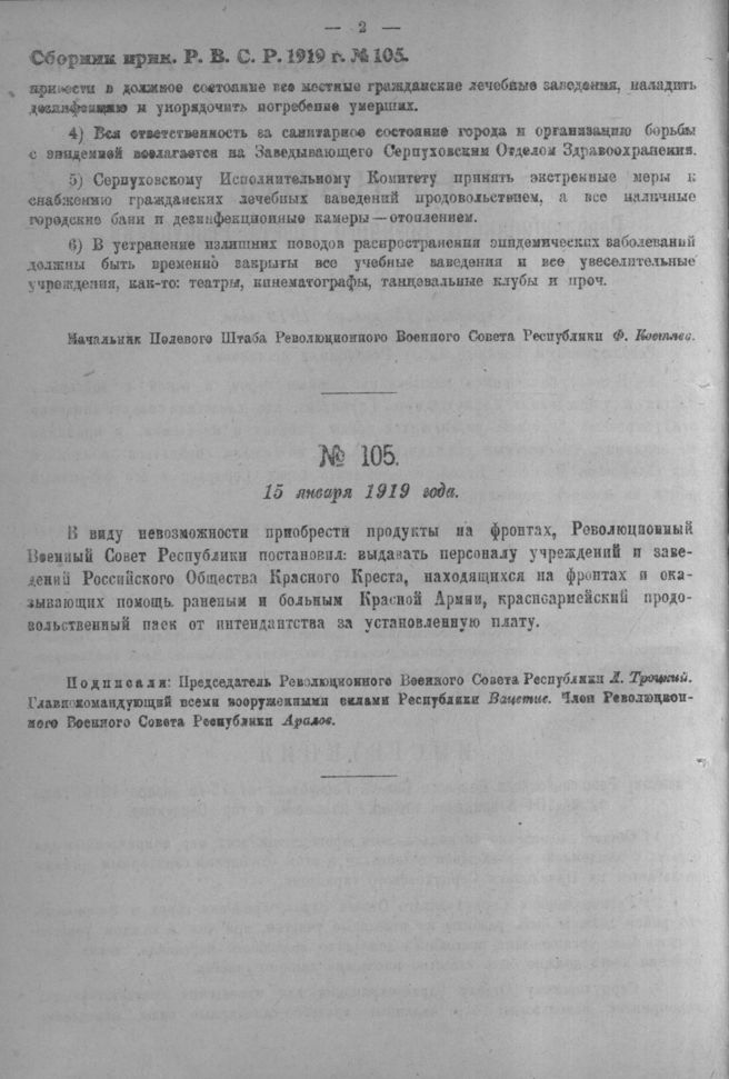 Приказ Революционного Военного Совета Республики № 105. 15 января 1919 года