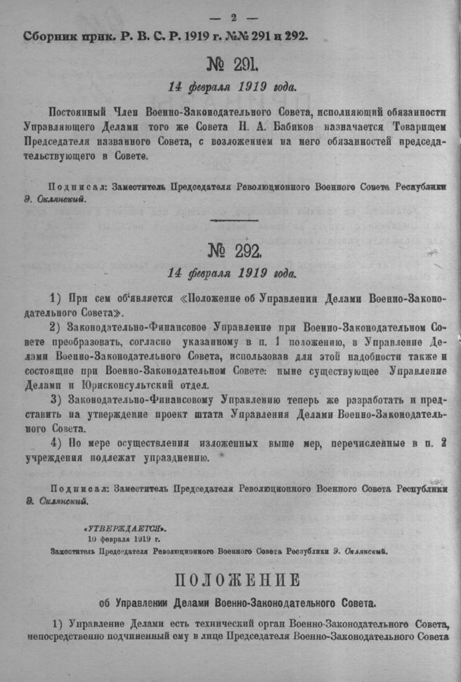 Приказ Революционного Военного Совета Республики № 292. 14 февраля 1919 года