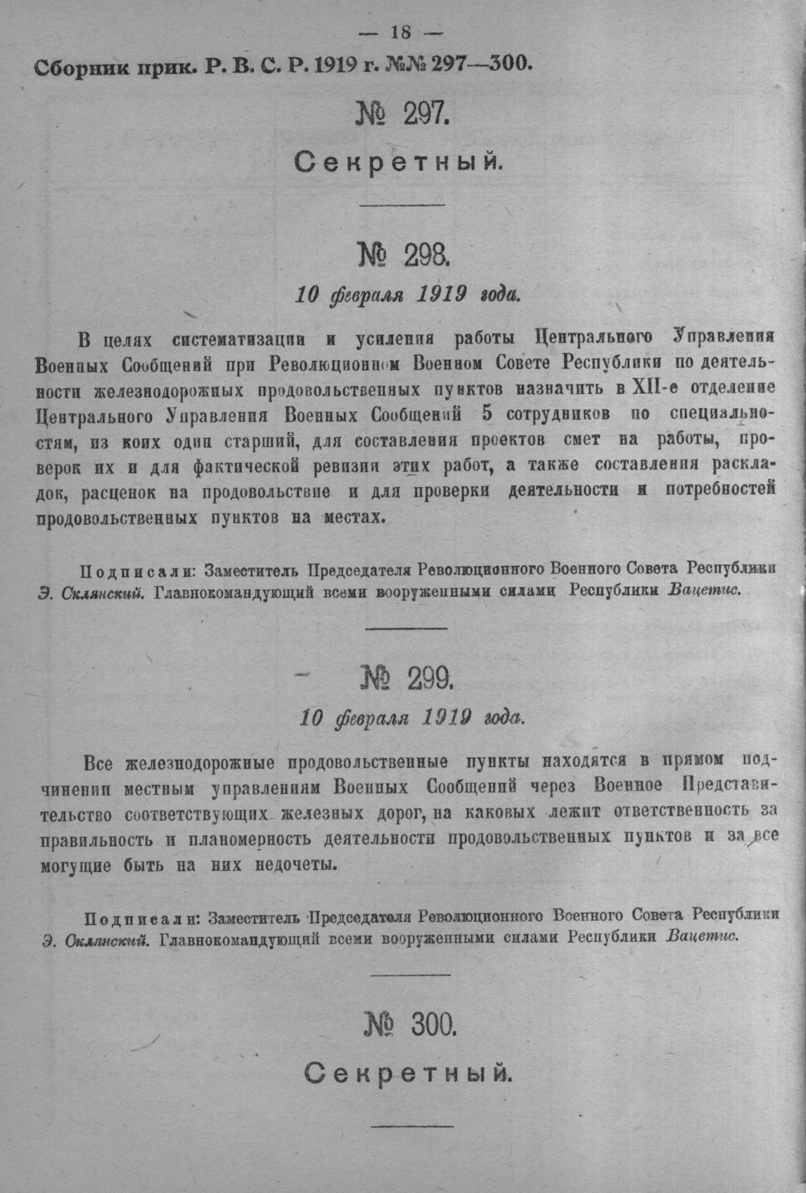 Приказ Революционного Военного Совета Республики № 299. 10 февраля 1919 года