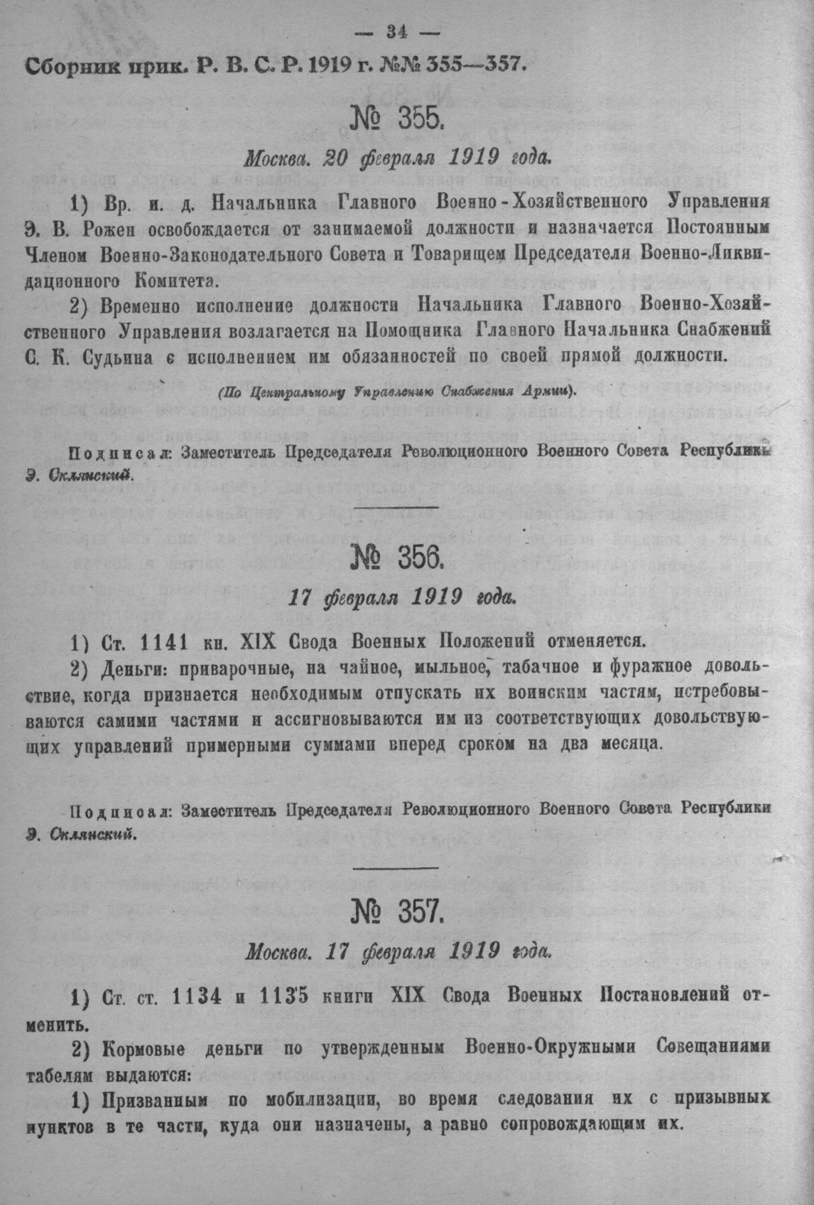 Сборник приказов Революционного Военного Совета Республики. 1919. № 3-893. — М., 1918-1919.