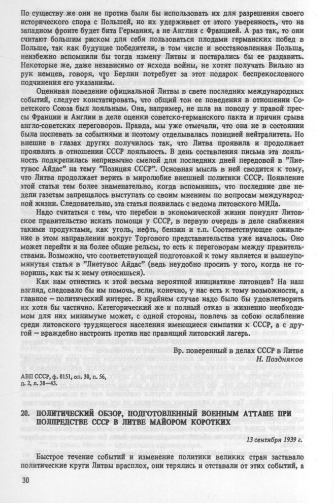 Политический обзор, подготовленный военным атташе при полпредстве СССР в Литве майором Коротких. 13 сентября 1939 г.