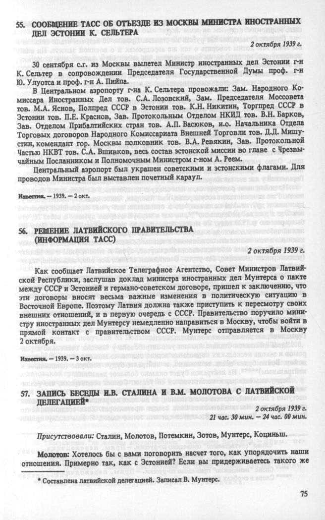 Полпреды сообщают...: Сб. док. об отношениях СССР с Латвией, Литвой и Эстонией. Август 1939 г.-август 1940 г. — М.: Междунар. отношения, 1990.