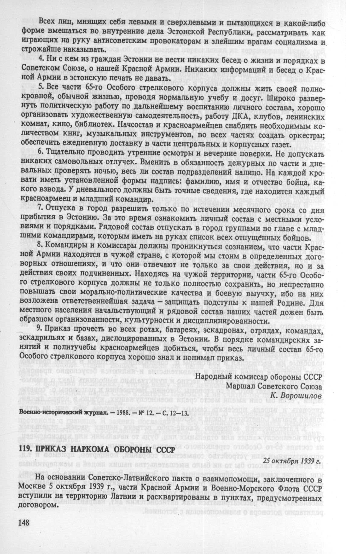 Приказ Наркома обороны СССР. 25 октября 1939 г. [1]