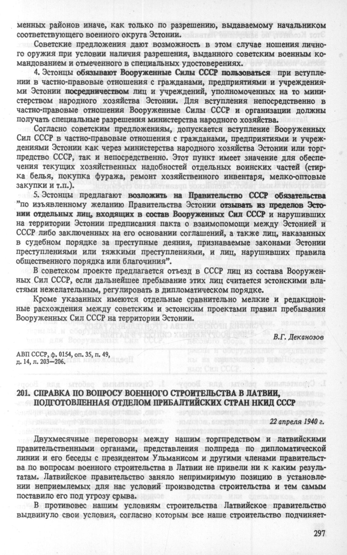 Справка по вопросу военного строительства в Латвии, подготовленная отделом Прибалтийских стран НКИД СССР. 22 апреля 1940 г. // АВП СССР, ф. 06, оп. 2, п. 21, д. 242, л. 24-28.