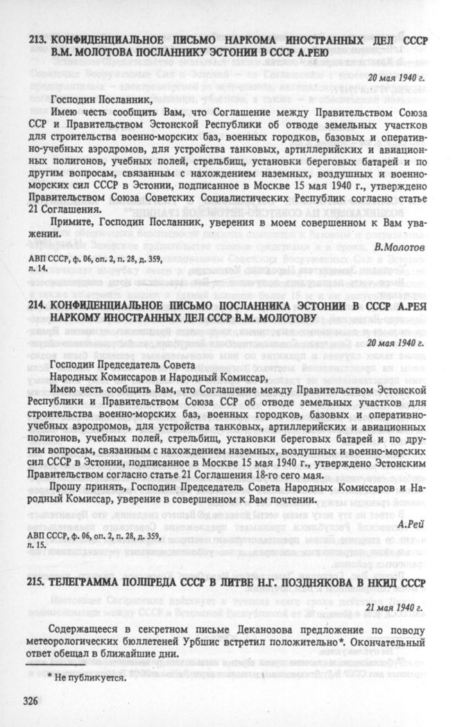 Полпреды сообщают...: Сб. док. об отношениях СССР с Латвией, Литвой и Эстонией. Август 1939 г.-август 1940 г. — М.: Междунар. отношения, 1990.