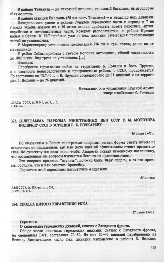 Сводка пятого управления РККА. 17 июля 1940 г. // ЦГАСА СССР, ф. 39 041, оп. 6, д. 3, л. 63—65.
