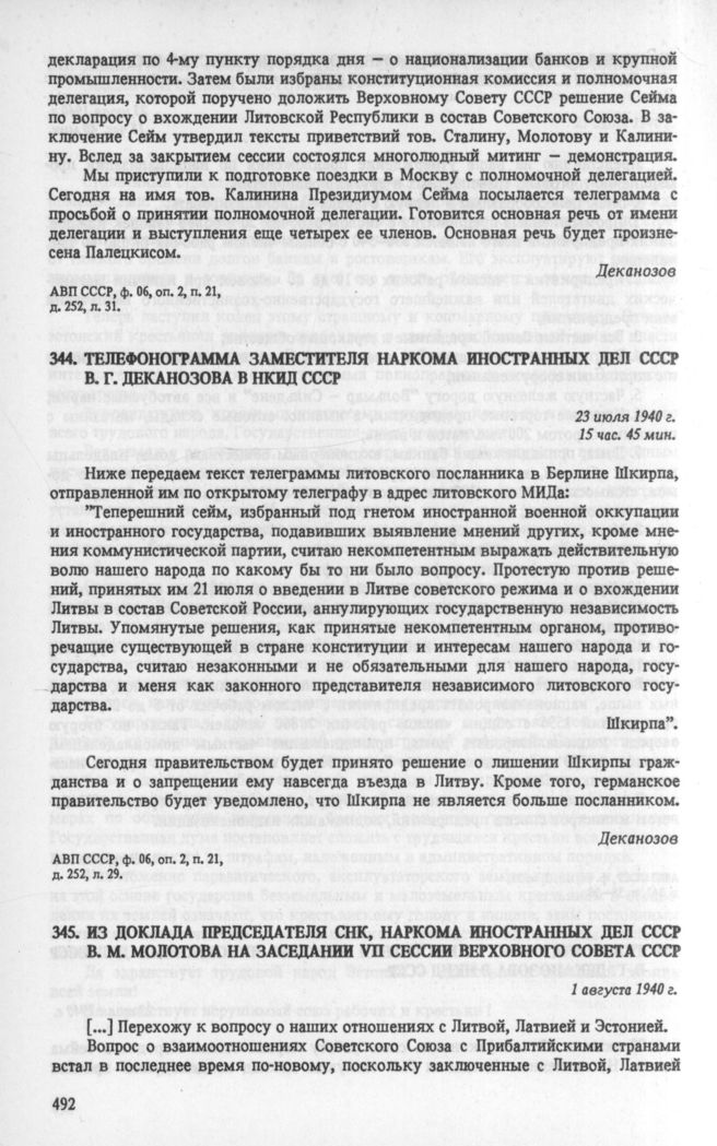 Телефонограмма заместителя наркома иностранных дел СССР В. Г. Деканозова в НКИД СССР. 23 июля 1940 г. // АВП СССР, ф. 06, оп. 2, п. 21, д. 252, л. 29.