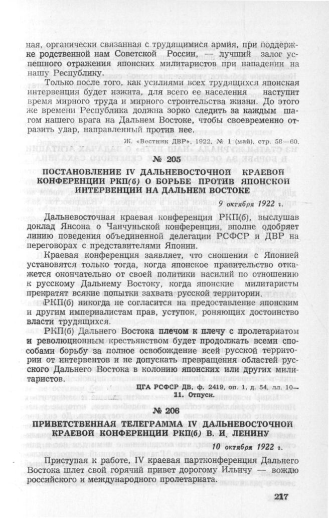 Приветственная телеграмма IV Дальневосточной краевой конференции РКП(б) В. И. Ленину. 10 октября 1922 г. // ЦГА РСФСР ДВ, ф. 2419, оп. 1, д. 54, л. 13. Отпуск.