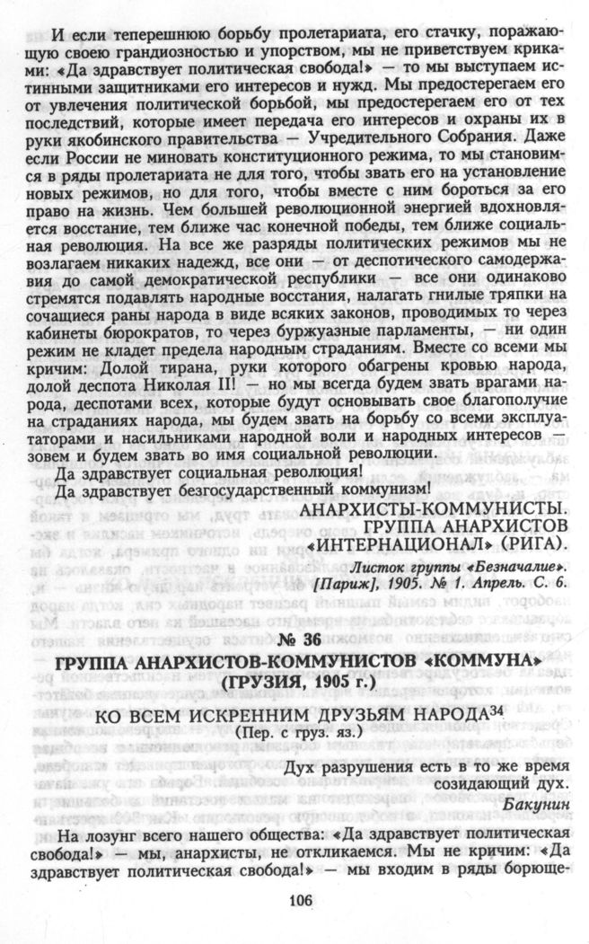 Группа анархистов-коммунистов «Коммуна» (Грузия, 1905 г.). Ко всем искренним друзьям народа // Хлеб и Воля. [Женева]. 1905. № 21—22. Август —сентябрь. С. 10.