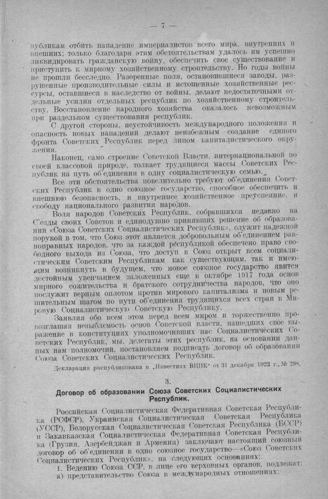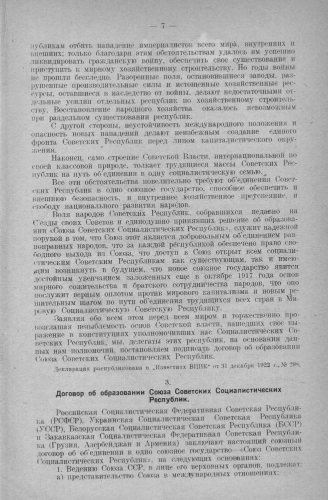 Договор об образовании Союза Советских Социалистических Республик. Москва. 30 декабря 1922 г. // Распубликован в Известиях ВЦИК от 31 декабря 1922 г., № 293.