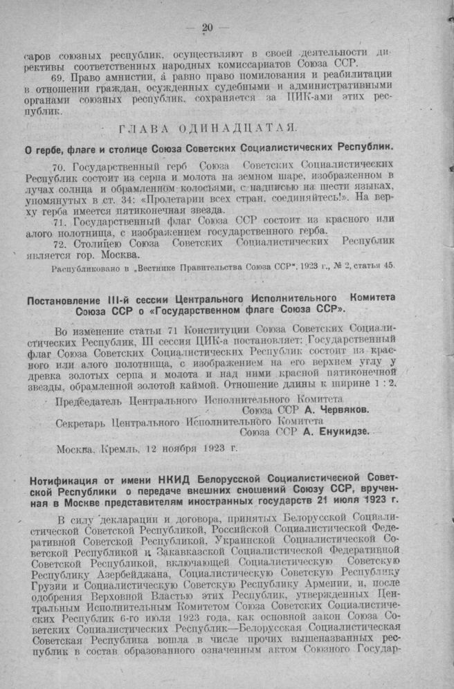 Нотификация от имени НКИД Белорусской Социалистической Советской Республики о передаче внешних сношений Союзу ССР, врученная в Москве представителям иностранных государств. 21 июля 1923 г.