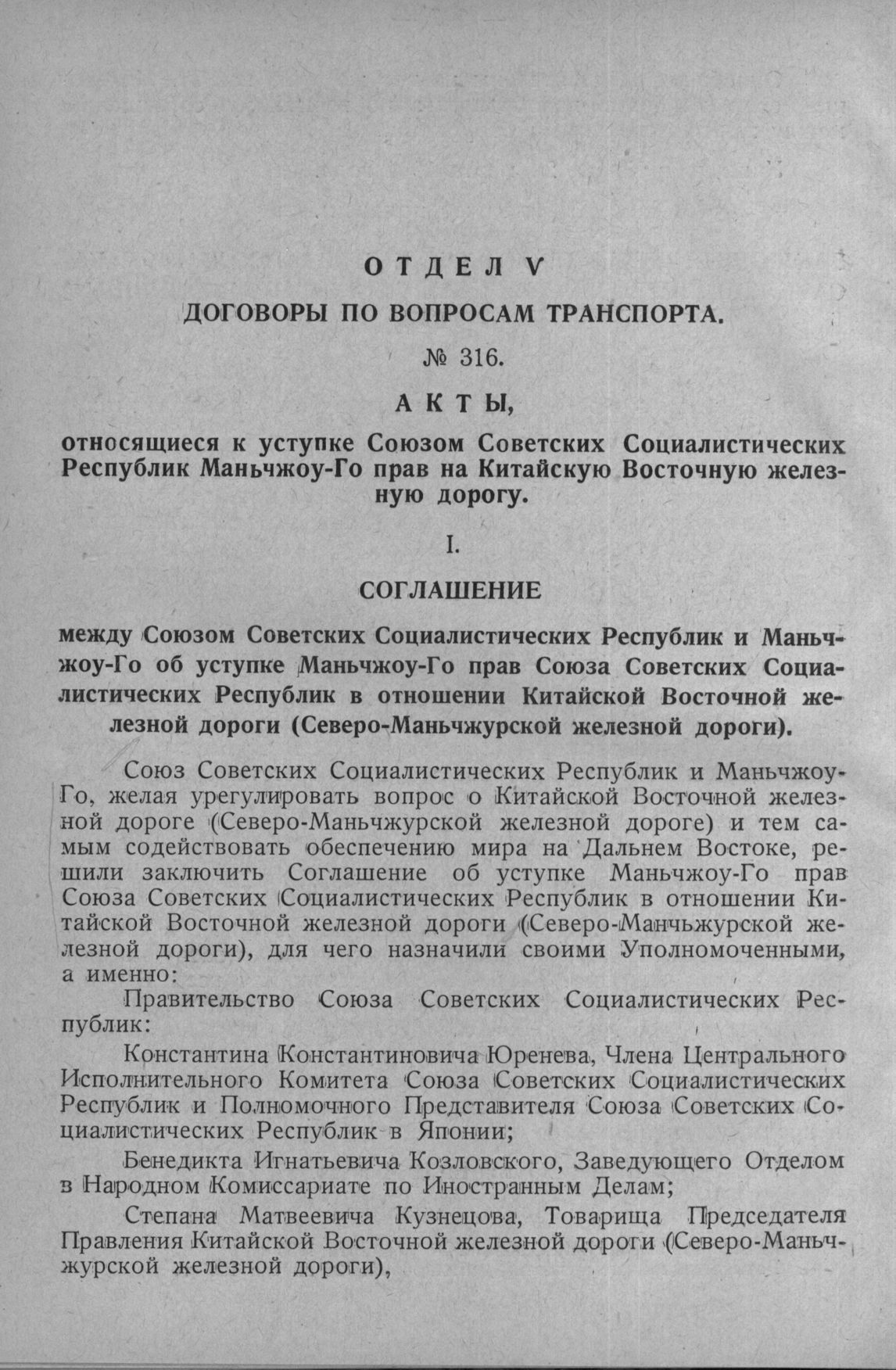 Cоглашение между Союзом Советских Социалистических Республик и Маньчжоу-Го об уступке Маньчжоу-Го прав Союза Советских Социалистических Республик в отношении Китайской Восточной железной дороги (Северо-Маньчжурской железной дороги). Токио, 23 март...