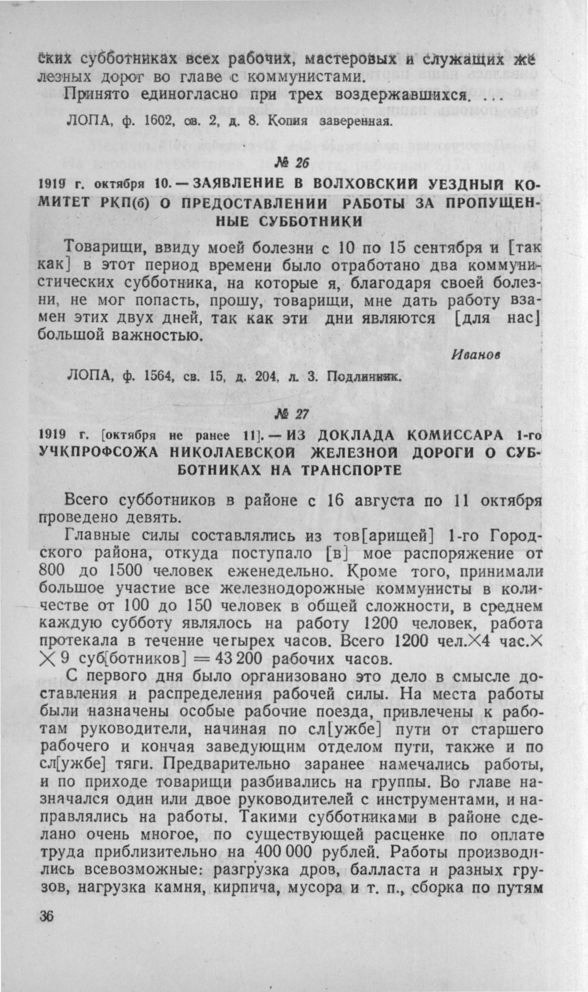 Коммунистические субботники в Петрограде в 1919-1921 гг. — Л.: Лениздат, 1949.