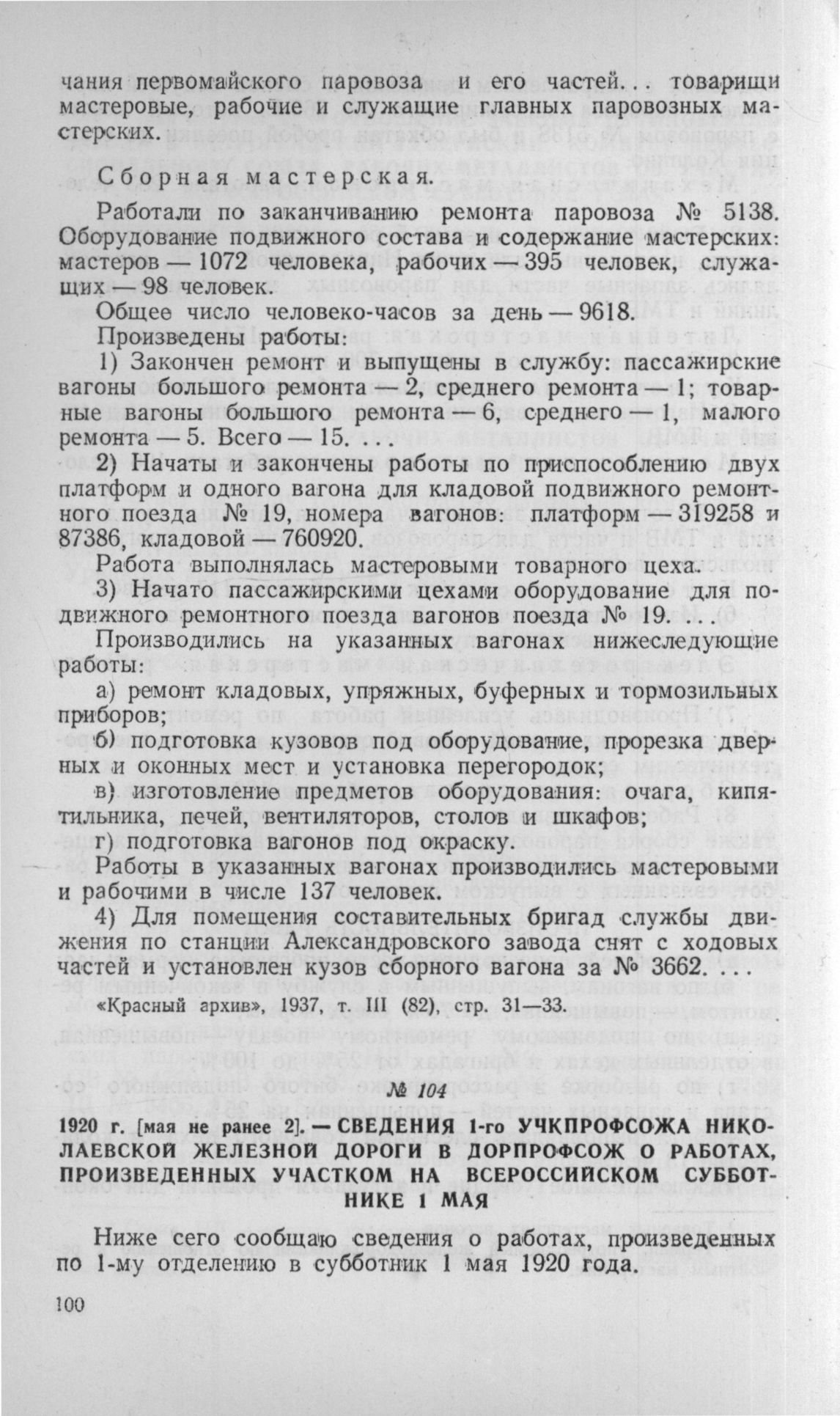 Сведения 1-го учкпрофсожа Николаевской железной дороги в Дорпрофсож о работах, произведенных участком на всероссийском субботнике 1 мая. Не ранее 2 мая 1920 г. // ГАОРСС ЛО, отдел 4, ф. 6288, св. 6, д. 167, л. 28. Отпуск.