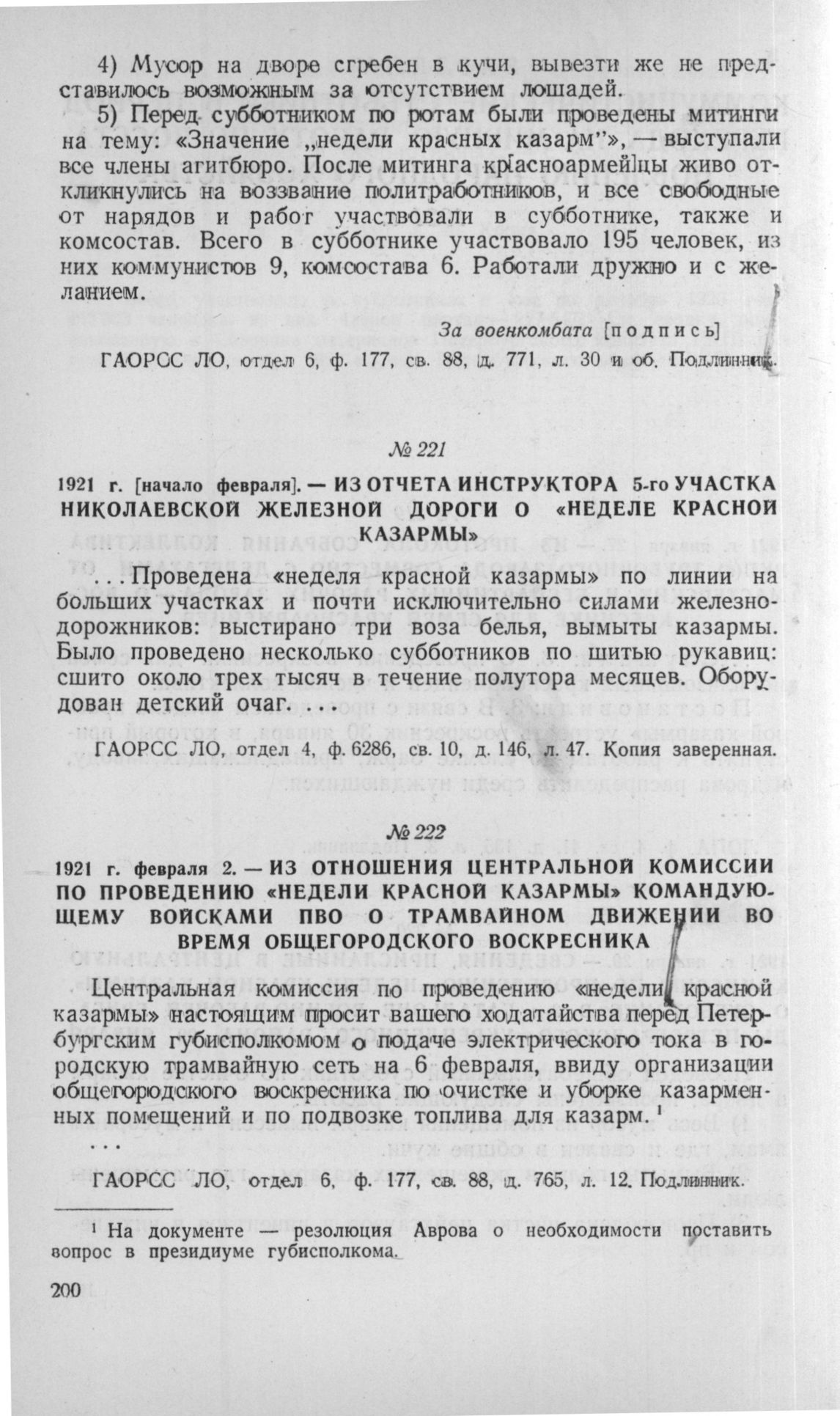 Из отчета инструктора 5-го участка Николаевской железной дороги о «неделе красной казармы». [Начало февраля] 1921 г. // ГАОРСС ЛО, отдел 4, ф. 6286, св. 10, д. 146, л. 47. Копия заверенная.