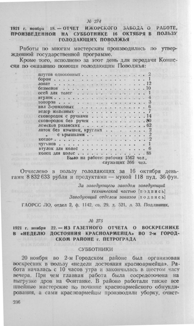 Отчет Ижорского завода о работе, произведенной на субботнике 16 октября в пользу голодающих Поволжья. 18 ноября 1921 г.
