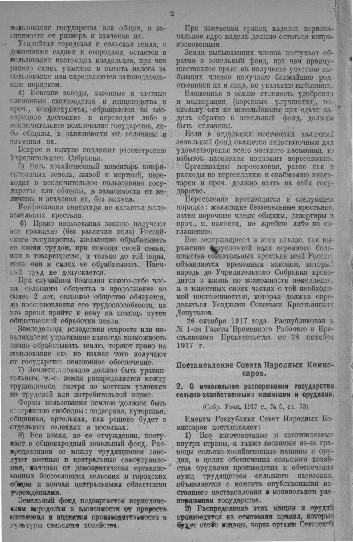 Постановление Совета Народных Комиссаров. О монопольном распоряжении государства сельско-хозяйственными машинами и орудиями // Собр. Узак. 1917 г., № 5, ст. 73. Распубликовано в № 21-м газеты Временного Правительства от 30 ноября 1917 года.