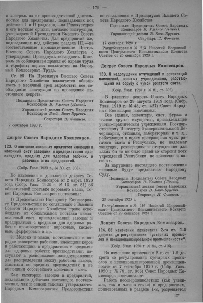 Декрет Совета Народных Комиссаров. О недопущении отчуждений и реквизиций помещений, занятых учреждениями, работающими на борьбу с чумой рогатого скота. 23 сентября 1920 г. // Собр. Узак. 1920 г. № 81, ст. 392. Распубликован в № 216 Известий Всероссийского Центрального Исполнительного Комитета Советов от 29 сентября 1920 г.