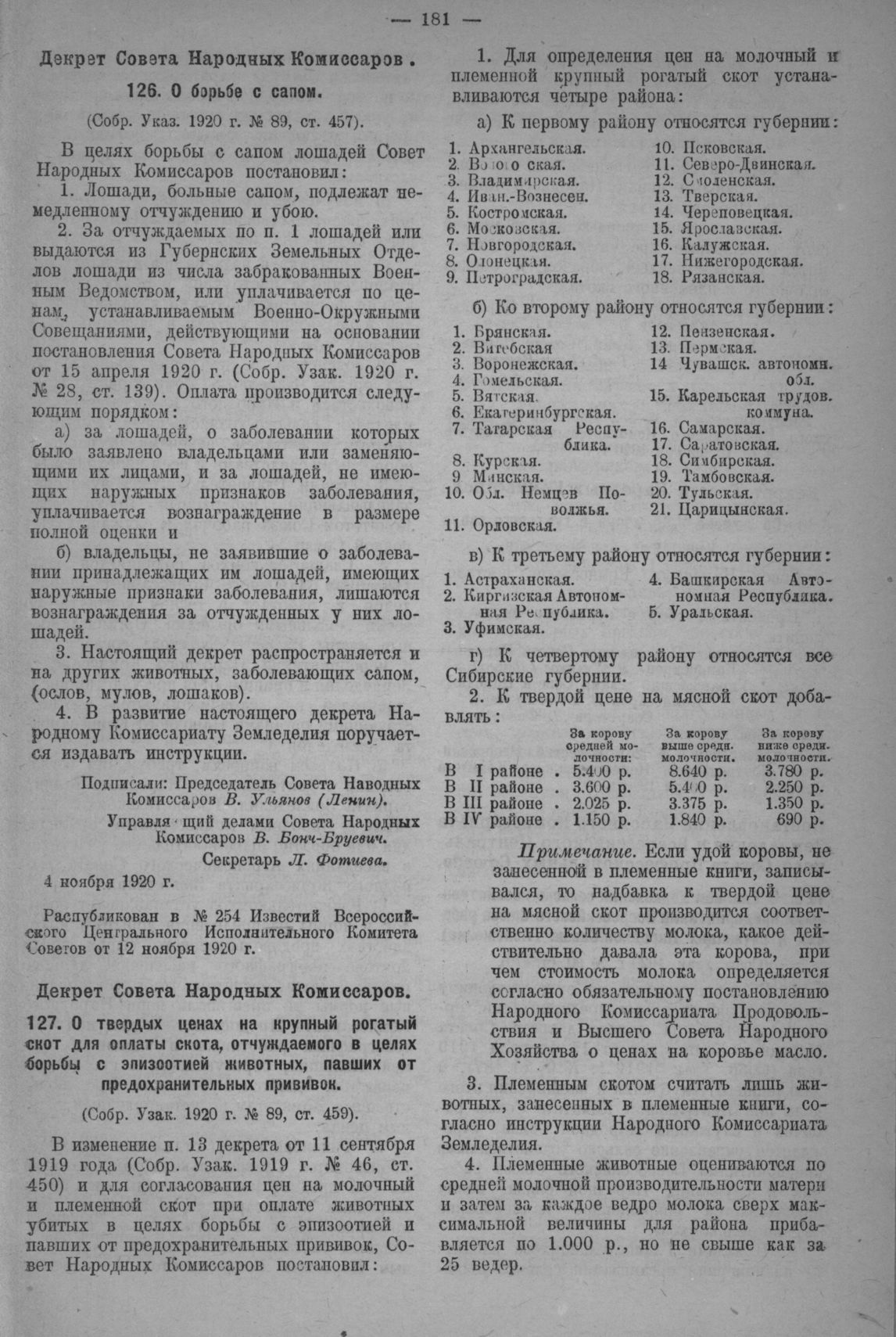 Декрет Совета Народных Комиссаров. О борьбе с сапом. 4 ноября 1920 г.