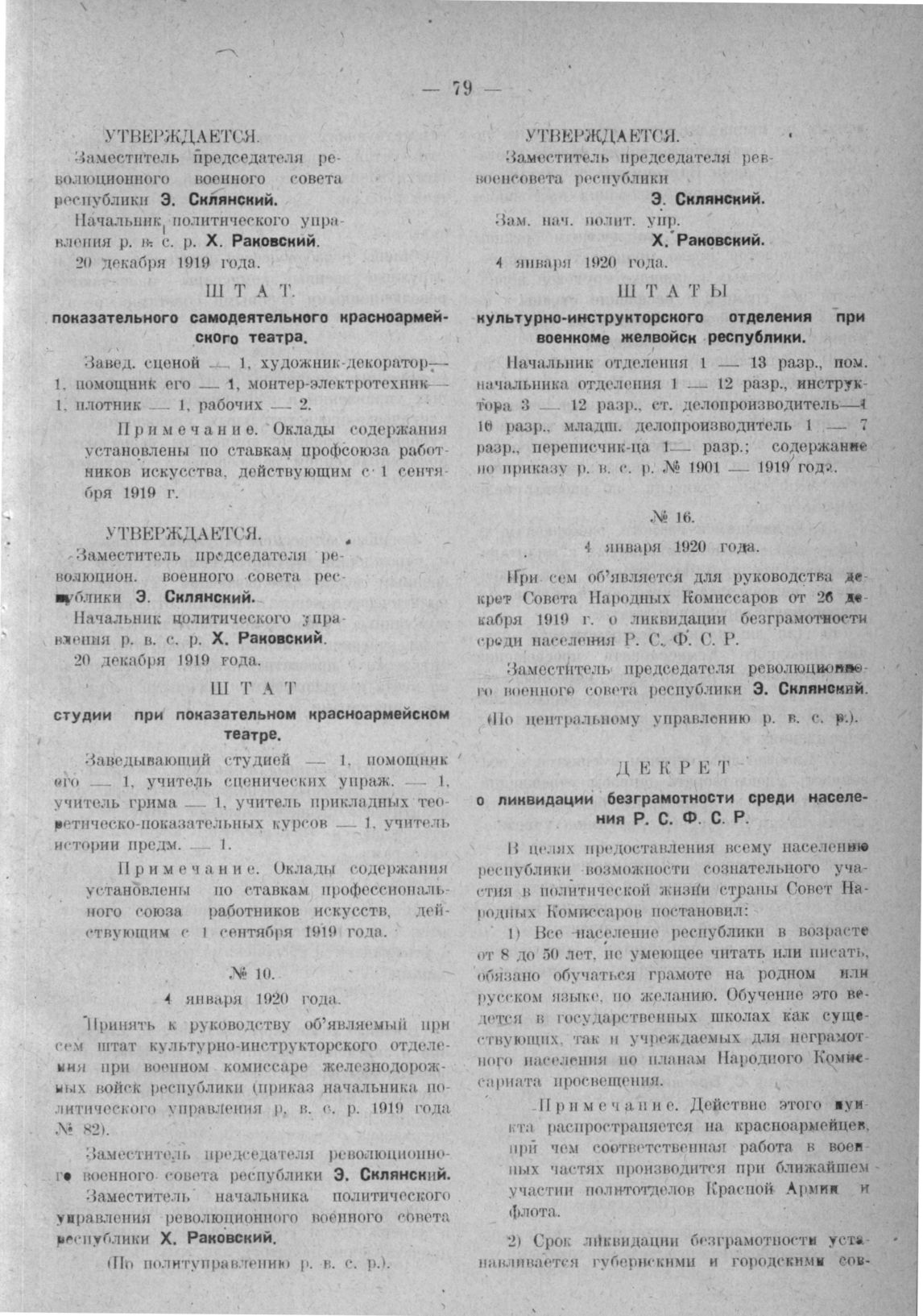 Приказ революционного военного совета республики (По политическому управлению р. в. с. р.). № 16. 4 января 1920 года