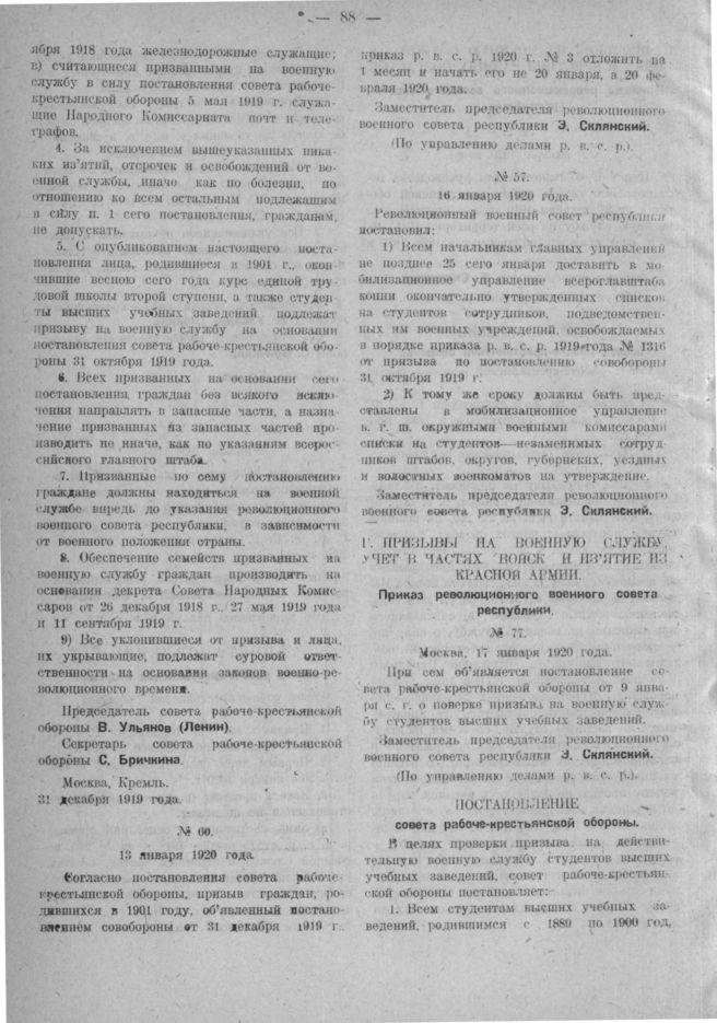 Приказ революционного военного совета республики (По управлению делами р. в. с. р). № 77. Москва, 17 января 1920 года