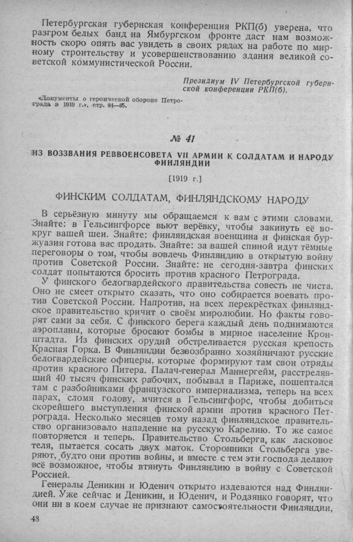 Из воззвания Реввоенсовета VII армии к солдатам и народу Финляндии. [1919 г.] // «Листовки гражданской войны в СССР 1918—1922 гг.», стр. 34—35.
