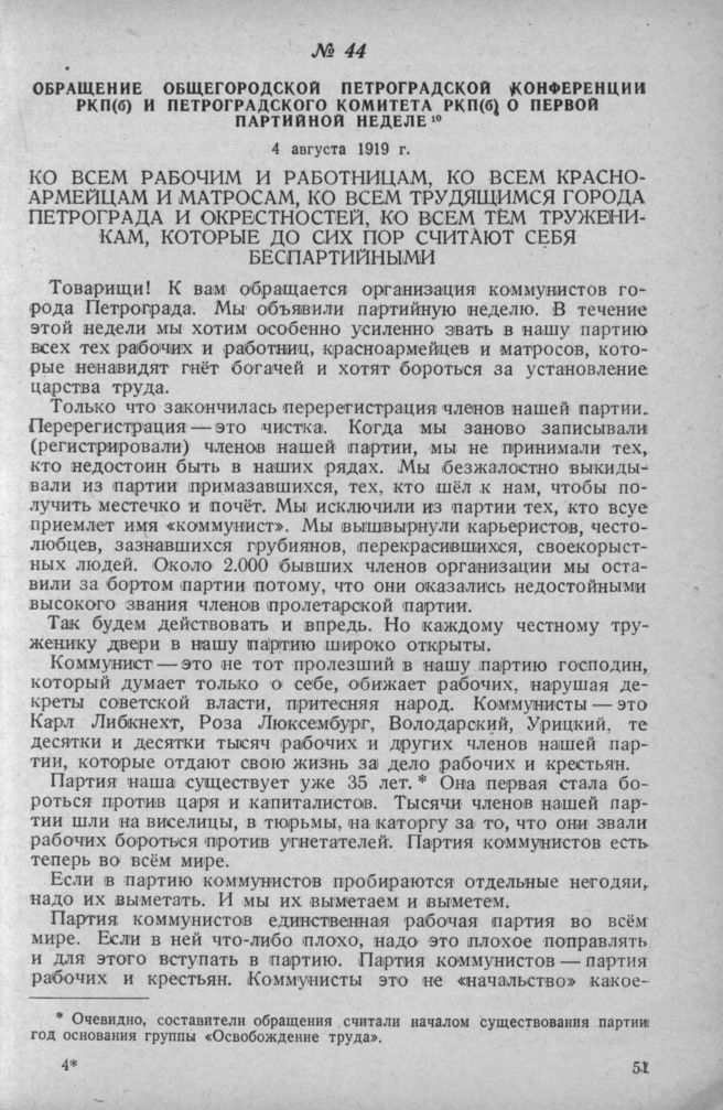 Обращение общегородской Петроградской конференции РКП(б) и Петроградского комитета РКП(б) о первой партийной неделе. 4 августа 1919 г.