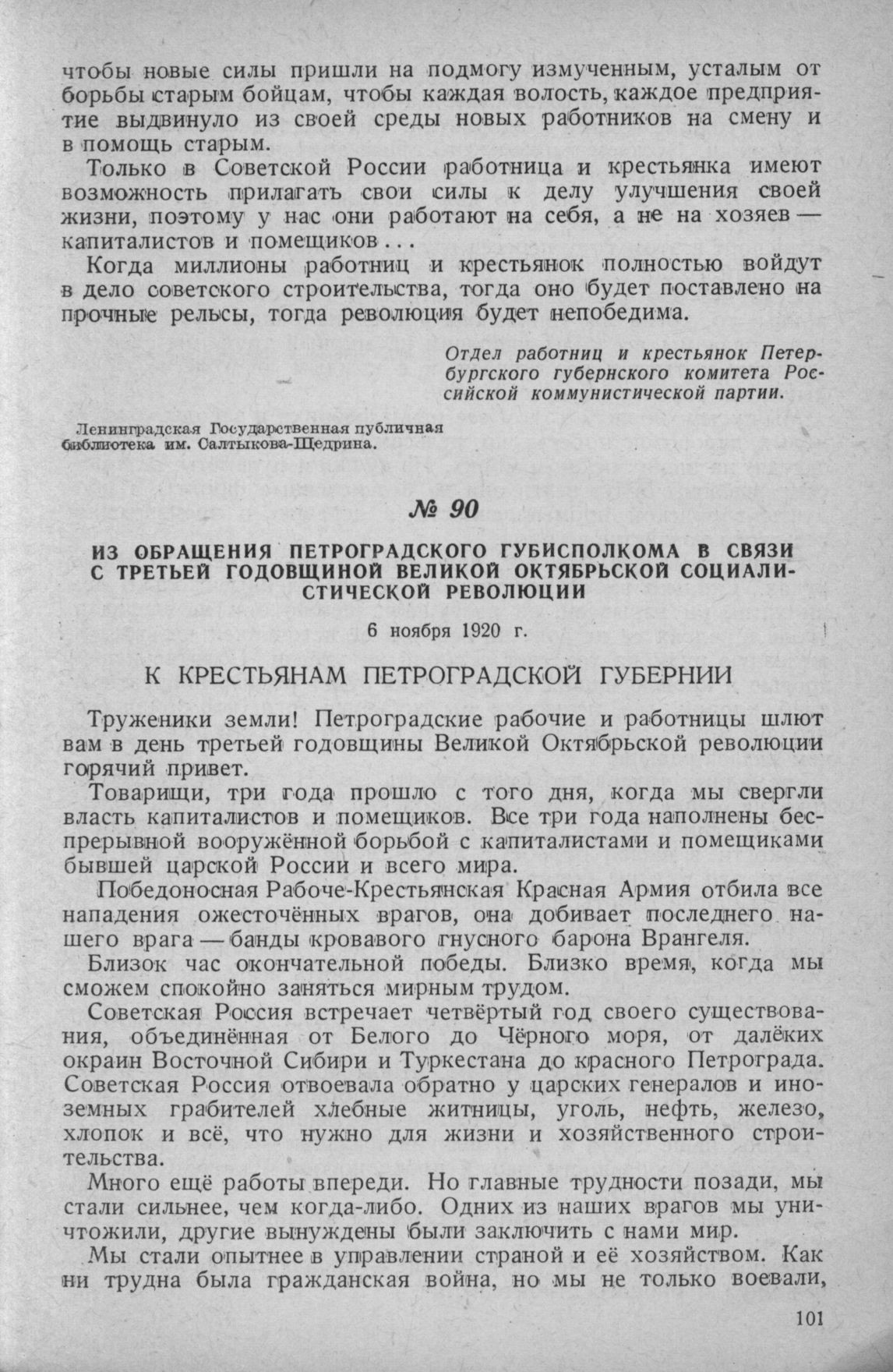 Из обращения Петроградского губисполкома в связи с третьей годовщиной Великой Октябрьской социалистической революции. 6 ноября 1920 г. // «Петроградская правда», 6 ноября 1920 г.